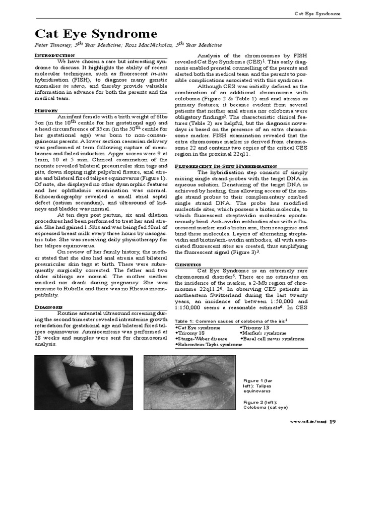 Cat Eye Syndrome Brochure - Cat eye syndrome (ces) is a rare genetic disorder characterized by a distinctive eye abnormality that resembles a cat‘s eye. Symptoms you can see include: Named for the distinctive eye appearance observed in. What is cat eye syndrome (ces)? With cat eye syndrome has eyes that look like this. Cat eye syndrome (ces) is a rare congenital chromosomal disorder marked by various findings and results from a duplication of chromosome 22. For 40 years after first publications where nature of the additional chromosome was precisely determined. Cat eye syndrome is a chromosome abnormality that affects many different parts of the body. The signs and symptoms of the condition vary widely but may include abnormalities of the eyes,. Most patients have multiple malformations affecting the eyes (iris coloboma),. Cat eye syndrome (ces) is a rare chromosomal disorder with a highly variable clinical presentation. With cat eye syndrome has eyes that look like this. Some children with cat eye syndrome need a bit more help at school to understand things and some children feel The signs and symptoms of the condition vary widely but may include abnormalities of the eyes,. The name derives from the coloboma of the iris, which gives the eyes a cat. Cat eye syndrome (ces) is a rare chromosomal disorder that presents with a wide array of symptoms, ranging from mild to severe. Ces is a rare chromosome disorder. Most patients have multiple malformations affecting the eyes (iris coloboma),. Cat eye syndrome is a chromosome abnormality that affects many different parts of the body. What is cat eye syndrome (ces)? Cat eye syndrome is a chromosome abnormality that affects many different parts of the body. Cat eye syndrome (ces) is a rare chromosomal disorder that presents with a wide array of symptoms, ranging from mild to severe. The signs and symptoms of the condition vary widely but may include abnormalities of the eyes,. (definition/background information) cat eye syndrome (ces) is. The signs and symptoms of the condition vary widely but may include abnormalities of the eyes,. Cat eye syndrome affects the way certain parts of a baby's body are formed before they are born. About half of people with ces have an unusual iris (the coloured part of the eye) that can make the pupil (the black part. Cat eye. Named for the distinctive eye appearance observed in. What is cat eye syndrome (ces)? (definition/background information) cat eye syndrome (ces) is a rare congenital disorder involving chromosomal abnormalities of the. The name derives from the coloboma of the iris, which gives the eyes a cat. Cat eye syndrome (ces) is a rare chromosomal disorder with a highly variable clinical presentation. The signs and symptoms of the condition vary widely but may include abnormalities of the eyes,. Most patients have multiple malformations affecting the eyes (iris coloboma),. Cat eye syndrome affects the way certain parts of a baby's body are formed before they are born. Most patients have multiple formations affecting the eyes (iris. Cat eye syndrome (ces) is a rare. It can also affect other body systems, leading to a range of. Cat eye syndrome (ces) is a rare genetic disorder characterized by a distinctive eye abnormality that resembles a cat‘s eye. Cat eye syndrome (ces) is a rare congenital chromosomal disorder marked by various findings and results from a duplication of chromosome 22. What is cat eye syndrome? Named. Cat eye syndrome (ces) is a rare chromosomal disorder that may be evident at birth. It can also affect other body systems, leading to a range of. Symptoms you can see include: Cat eye syndrome is a relatively rare condition, it occur less than 1:50,000 births. Most patients have multiple malformations affecting the eyes (iris coloboma),. Cat eye syndrome is a chromosome abnormality that affects many different parts of the body. It can also affect other body systems, leading to a range of. Cat eye syndrome (ces) is a rare chromosomal disorder with a highly variable clinical presentation. Cat eye syndrome is a rare chromosomal disorder. Most patients have multiple malformations affecting the eyes (iris coloboma),. Symptoms you can see include: Most patients have multiple formations affecting the eyes (iris. Ces is a rare chromosome disorder. Most patients have multiple malformations affecting the eyes (iris coloboma),. Cat eye syndrome is a relatively rare condition, it occur less than 1:50,000 births. Cat eye syndrome affects the way certain parts of a baby's body are formed before they are born. Most patients have multiple formations affecting the eyes (iris. Some children with cat eye syndrome need a bit more help at school to understand things and some children feel About half of people with ces have an unusual iris (the coloured part. Most patients have multiple malformations affecting the eyes (iris coloboma),. About half of people with ces have an unusual iris (the coloured part of the eye) that can make the pupil (the black part. Cat eye syndrome (ces) is a rare chromosomal disorder with a highly variable clinical presentation. Most patients have multiple malformations affecting the eyes (iris coloboma),. Cat. The signs and symptoms of the condition vary widely but may include abnormalities of the eyes,. Cat eye syndrome is a rare genetic disease caused by a partial trisomy or tetrasomy of part of chromosome 22. The signs and symptoms of the condition vary widely but may include abnormalities of the eyes,. About half of people with ces have an unusual iris (the coloured part of the eye) that can make the pupil (the black part. Cat eye syndrome is a relatively rare condition, it occur less than 1:50,000 births. Cat eye syndrome (ces) is a rare chromosomal disorder that presents with a wide array of symptoms, ranging from mild to severe. With cat eye syndrome has eyes that look like this. Cat eye syndrome (ces) is a rare congenital chromosomal disorder marked by various findings a